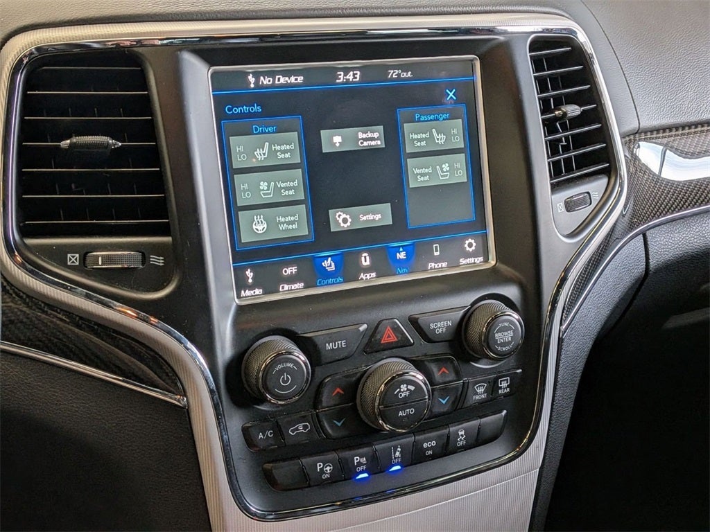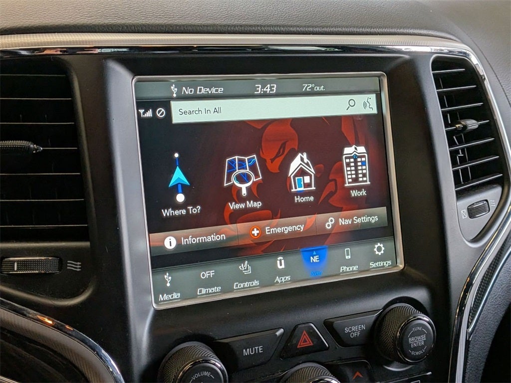 8.4 Inch Touchscreen Display, Handsfree Phone and Audio, Remote Start System, Full–Speed Forward–Collision Warning Plus, Blind–Spot and Cross–Path Detection, Advanced Brake–Assist, Adaptive Cruise Control with Stop and Go, Brembo® Red High Performance Brakes, Bilstein® Active Suspension, Parallel and Perpendicular Park–Assist, LaneSense® Lane Departure Warning Plus, Full Speed Forward Collision Warning Plus, Adaptive Cruise Control with Stop, Keyless Enter–N–GoTM, Grand Cherokee SRT, 4D Sport Utility, SRT HEMI 6.4L V8 MDS, 8-Speed Automatic, 4WD, Black Leather, 19 Speakers High Performance Audio, 7 & 4 Pin Wiring Harness, Adaptive suspension, Anti-whiplash front head restraints, Apple CarPlay/Android Auto, Auto High-beam Headlights, Auto-dimming Rear-View mirror, Automatic temperature control, Brake assist, Class IV Receiver Hitch, Dual front impact airbags, Dual front side impact airbags, Dual-Pane Panoramic Sunroof, Emergency communication system: SiriusXM Guardian, Front dual zone A/C, Front fog lights, Fully automatic headlights, Garage door transmitter, Headlight cleaning, Heated front seats, Heated rear seats, Heated steering wheel, Heavy-Duty Engine Cooling, High performance Audio, High Performance Brakes, High Performance Suspension, Knee airbag, Leather/Perforated Suede SRT Seats, Low tire pressure warning, Memory seat, Navigation System, Occupant sensing airbag, Overhead airbag, ParkView Rear Back-Up Camera, Power driver seat, Power Liftgate, Power passenger seat, Premium Headliner Module, Rain sensing wipers, Red Seat Belts, Remote keyless entry, Speed-Sensitive Wipers, Steering wheel mounted audio controls, Telescoping steering wheel, Tilt steering wheel, Trailer Tow Group IV, Ventilated front seats, Wheels: 20 x 10 Black Satin Aluminum.