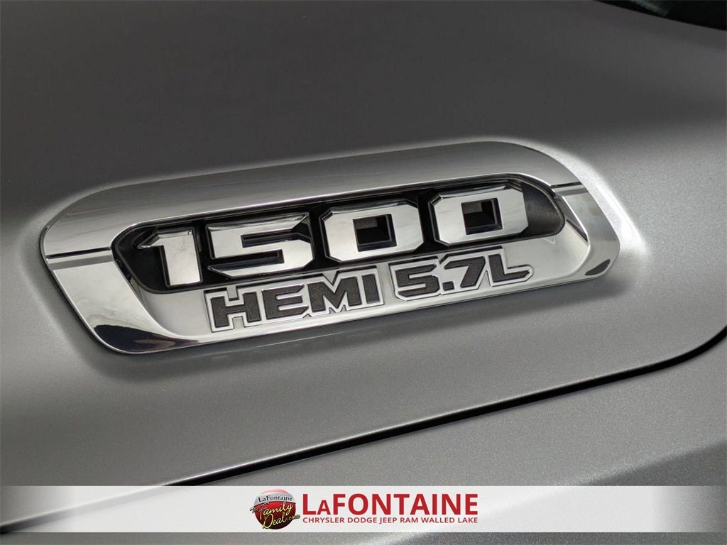 Handsfree Phone and Audio, Ready–Alert Braking, Rain Brake Support, 1500 Big Horn/Lone Star, 4D Crew Cab, HEMI 5.7L V8 Multi Displacement VVT, 8-Speed Automatic, 4WD, Billet Silver Metallic Clearcoat, Black Cloth, 115V Auxiliary Power Outlet, 115V Auxiliary Rear Power Outlet, 2 USB Full Function/Charge Only Media Hub, 8.4 Touchscreen Display, 9 Amplified Speakers w/Subwoofer, Air Conditioning ATC w/Dual Zone Control, Apple CarPlay, Auto-Dimming Rear-View Mirror, Bed Utility Group, Big Horn Level 2 Equipment Group, Brake assist, Class IV Receiver Hitch, Dampened Tailgate, Deluxe Cloth Bucket Seats, Dual front impact airbags, Dual front side impact airbags, Front fog lights, Fully automatic headlights, Google Android Auto, GPS Navigation, Heated Front Seats, Heated Steering Wheel, Illuminated entry, Integrated Center Stack Radio, Low tire pressure warning, Occupant sensing airbag, Overhead airbag, ParkSense Front/Rear Park Assist w/Stop, ParkView Rear Back-Up Camera, Pick-Up Box Lighting, Power 8-Way Driver Seat, Power Adjustable Pedals, Power Heated Fold Away Mirrors, Premium Lighting Group, Rear Power Sliding Window, Rear Wheelhouse Liners, Rear Window Defroster, Remote keyless entry, Remote Start System, Security Alarm, Single Disc Remote CD Player, SiriusXM Satellite Radio, Spray In Bedliner, Steering Wheel Mounted Audio Controls, Telescoping steering wheel, Tilt steering wheel, Universal Garage Door Opener, Wheel to Wheel Side Steps, Wheels: 20 Aluminum Chrome Clad.