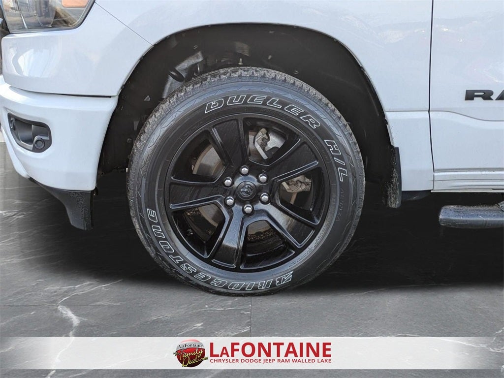 Class IV Receiver-Hitch, Handsfree Phone and Audio, Remote Start System, Apple CarPlay, Google Android Auto, Ready–Alert Braking, Rain–Brake Support, 1500 Big Horn/Lone Star, 4D Crew Cab, HEMI 5.7L V8 Multi Displacement VVT, 8-Speed Automatic, 4WD, Bright White Clearcoat, Black Cloth, 115V Auxiliary Power Outlet, 115V Auxiliary Rear Power Outlet, 8.4 Touchscreen Display, Air Conditioning ATC w/Dual Zone Control, Anti-Spin Differential Rear Axle, Apple CarPlay, Auto-Dimming Exterior Driver Mirror, Auto-Dimming Rear-View Mirror, Big Horn Level 2 Equipment Group, Brake assist, Class IV Receiver Hitch, Deluxe Cloth Bucket Seats, Dual Exhaust w/Black Tips, Dual front impact airbags, Dual front side impact airbags, Exterior Mirrors w/Memory, Fully automatic headlights, Google Android Auto, Heated Front Seats, Heated Steering Wheel, Integrated Voice Command w/Bluetooth®, Low tire pressure warning, MOPAR Trailer Camera Wiring w/No Camera, Night Edition, Occupant sensing airbag, Overhead airbag, ParkSense Front/Rear Park Assist w/Stop, ParkView Rear Back-Up Camera, Power 8-Way Driver Seat, Power Adjustable Pedals, Power-Folding Mirrors, Rear Power Sliding Window, Rear Window Defroster, Remote keyless entry, Remote Start System, Security Alarm, SiriusXM Radio Service, Steering wheel mounted audio controls, Telescoping steering wheel, Tilt steering wheel, Universal Garage Door Opener, Wheels: 20 x 9.0 Premium Paint/Polished.
