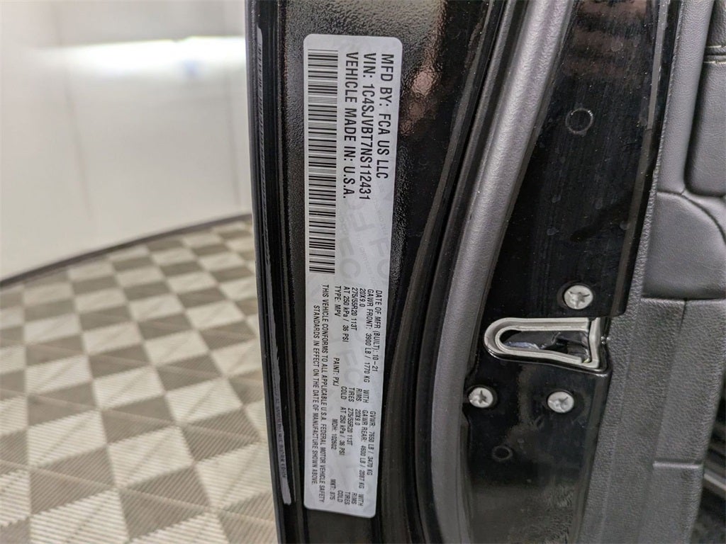 10.1 Inch Touchscreen Display, 4G LTE Wi-Fi Hot Spot, Class IV Receiver-Hitch, Handsfree Phone and Audio, Parksense Front and Rear Park Assist, Remote Start System, Active Lane–Management System, Full–Speed Forward–Collision Warning Plus, Blind–Spot and Cross–Path Detection, Apple CarPlay, Google Android Auto, Adaptive Cruise Control with Stop and Go, Wireless Charging–Pad, Alpine 9–Speaker System with Subwoofer, Adaptive Cruise–Control with Stop and Go, ParkSense® Front and Rear Park– Assist with Stop, Blind–Spot and Rear Cross–Path Detection, Pedestrian Emergency–Braking, Wagoneer Series II, 4D Sport Utility, 5.7L V8, 8-Speed Automatic, 4WD, Diamond Black Crystal Pearlcoat, Black Leather, Adjustable pedals, Anti-whiplash front head restraints, Auto-dimming door mirrors, Auto-dimming Rear-View mirror, Auto-leveling suspension, Automatic temperature control, Brake assist, Dual front impact airbags, Dual front side impact airbags, Exterior Parking Camera Rear, Front dual zone A/C, Front fog lights, Fully automatic headlights, Garage door transmitter, Heated front seats, Heated steering wheel, Knee airbag, Leather Trimmed Bucket Seats, Low tire pressure warning, Memory seat, Navigation System, Normal Duty Suspension, Occupant sensing airbag, Overhead airbag, Pedal memory, Power adjustable front head restraints, Power driver seat, Power Liftgate, Power passenger seat, Quick Order Package 22J, Rain sensing wipers, Rear air conditioning, Rear dual zone A/C, Remote keyless entry, Speed-sensing steering, Speed-Sensitive Wipers, Steering wheel memory, Steering wheel mounted audio controls, Telescoping steering wheel, Tilt steering wheel, Ventilated front seats, Wheels: 20 x 9.0 Aluminum Base Finish.