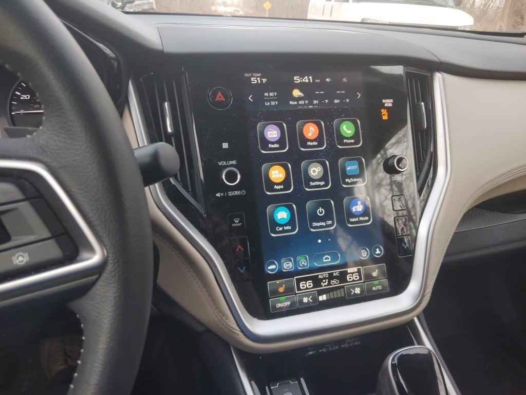 - Radio: Subaru 11.6" Multimedia Plus System -inc: AM/FM stereo, HD Radio, valet mode, multi-touch gesture high resolution display screen, voice activated controls, Bluetooth® audio streaming and hands-free phone connectivity w/SMS text messaging (refer to subaru.com for cell phone compatibility), Near Field Communication (NFC), iPod control capability, SiriusXM w/360L (4 months free trial/subscription required after), SiriusXM Travel Link (3 years free trial/subscription required after), smartphone integration for Android Auto and Apple CarPlay w/full screen view and wireless connection, USB and Over The Air (OTA) audio system update, audio system and Bluetooth® steering wheel control switches, 6 speakers, illuminated 3.5mm auxiliary input jack and illuminated USB-A and USB-C input/charge ports